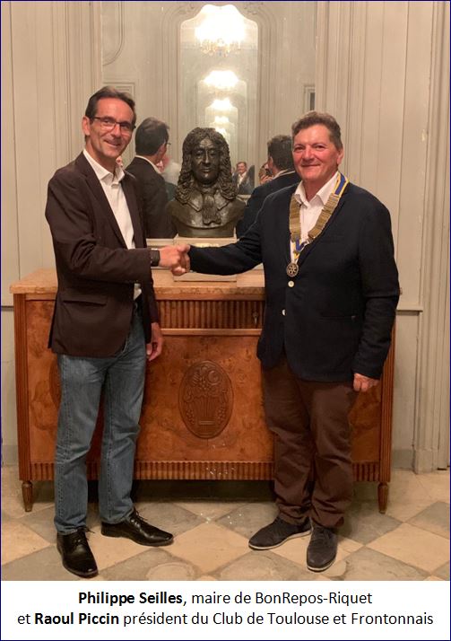 Le Rotary Toulouse et Frontonnais commanditaire et donateur ,a souhaité par le don à la mairie, soutenir Bonrepos-Riquet dans ses efforts pour rénover et valoriser le château, celui-ci est classé aux monuments historiques depuis 2008.